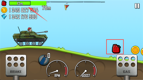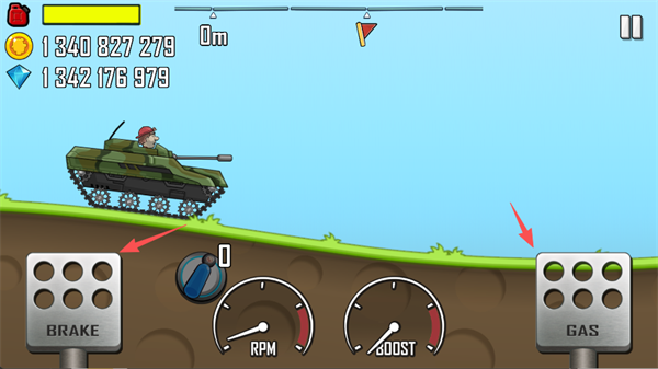 4、游戲中左側(cè)是剎車鍵,右側(cè)是油門鍵,合理控制油門與剎車的節(jié)奏,保持車輛平衡,避免在起伏路段翻車。