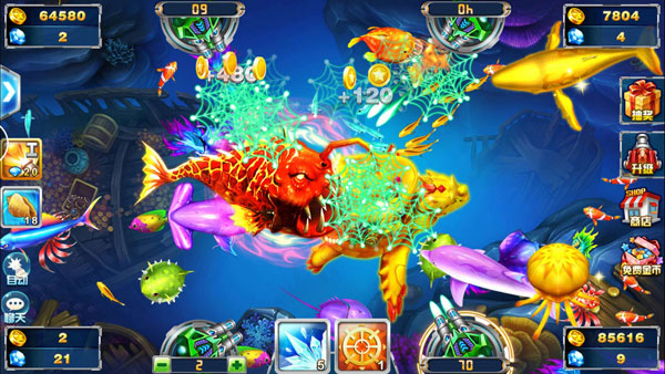 3、在遇到炮臺(tái)的附近游過的慢魚,比如說燈籠魚、魔鬼魚、烏龜……,這些魚基本上通通來白白給你送分來的,只需要把炮口方向與等級(jí)調(diào)好,再不停的打就能全部收入囊中了。