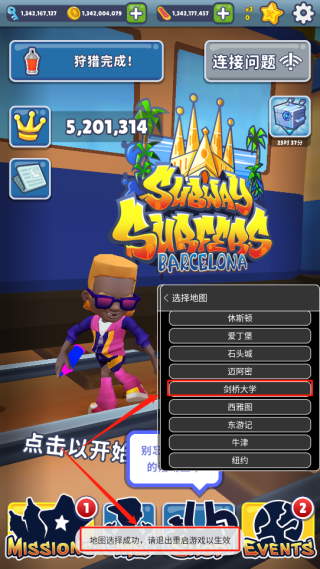 4. 點(diǎn)擊心儀的地圖(例如“劍橋大學(xué)”),確認(rèn)后**重啟游戲即可生效**: