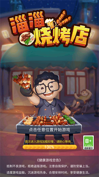 1、啟動《淄淄燒烤店》游戲,點擊任意位置即可開始你的燒烤創(chuàng)業(yè)之路。