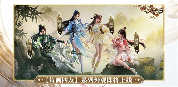 魏輕、顧清寒、藍(lán)夢、殷紫萍聯(lián)袂登場!以“梅、蘭、竹、菊”四君子為靈感,將傳統(tǒng)文化意象融入角色設(shè)計,演繹武俠世界的詩意美學(xué)。