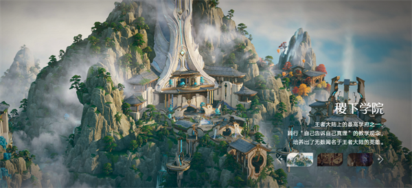 依山而建,以通天塔為視覺中心,飛檐翹角的中式樓閣與流光機(jī)關(guān)交相輝映,云霧繚繞間盡顯“自己告訴自己真理”的治學(xué)精神。