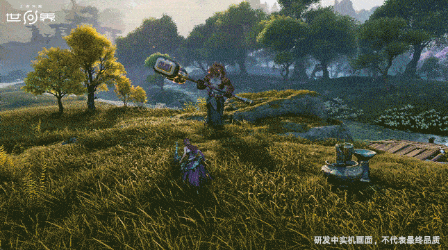 金黃草甸間溪流澄澈,上古石碑散落,遠(yuǎn)山疊翠,飛鳥掠空,是一處充滿生機(jī)的新手試煉場。