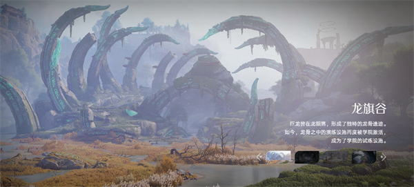 上古巨龍骸骨遍布峽谷,幽綠符文閃爍其間,荒草與淺溪點(diǎn)綴,彌漫著原始而磅礴的力量感。