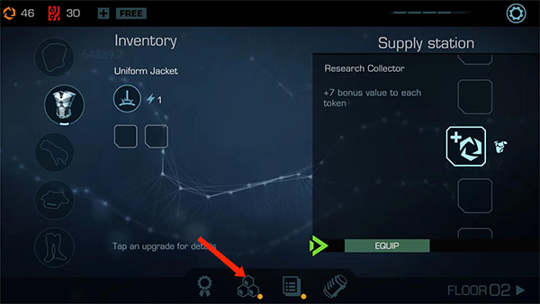 8. 返回主界面后,點(diǎn)擊下方【正方體】圖標(biāo),可對(duì)頭部、身體、手部、鞋子、腰帶及技能等六大屬性進(jìn)行升級(jí)強(qiáng)化。