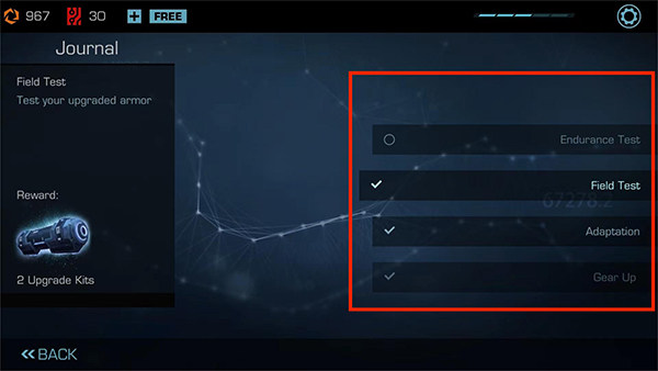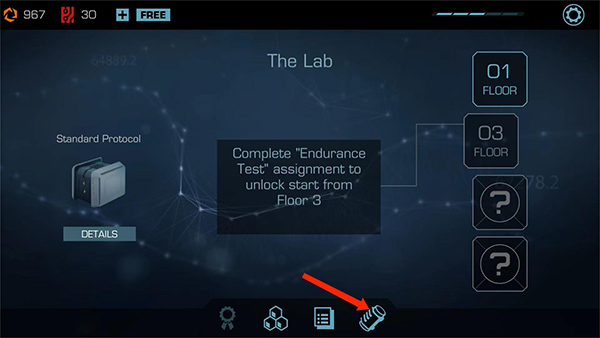 9. 點(diǎn)擊下方【筆記本】圖標(biāo),可進(jìn)入試驗(yàn)?zāi)K,進(jìn)行現(xiàn)場(chǎng)測(cè)試、耐久性訓(xùn)練及跑酷前的戰(zhàn)術(shù)準(zhǔn)備。