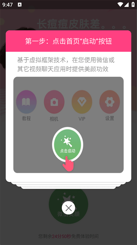 1. 打開(kāi)微微視頻美顏助手,點(diǎn)擊首頁(yè)啟動(dòng)按鈕;