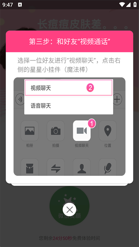 3. 選擇好友發(fā)起視頻通話,點(diǎn)擊右側(cè)的小星星魔法棒圖標(biāo);