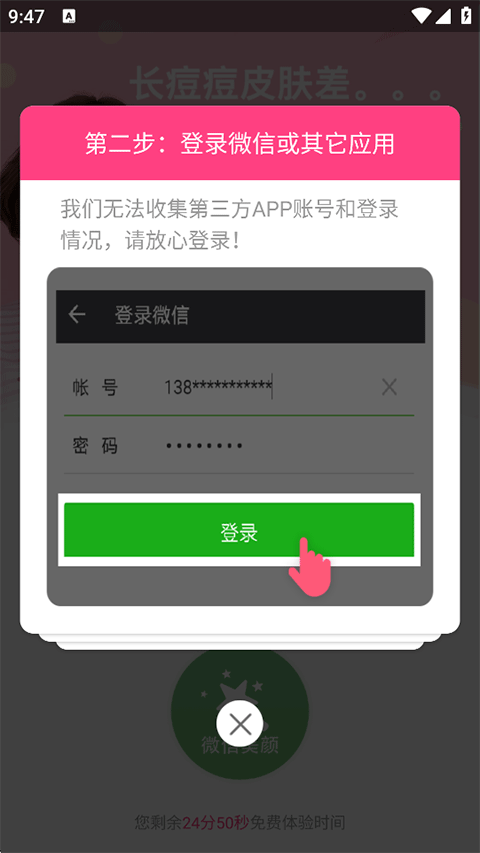 2. 登錄微信或其他需啟用美顏的視頻應(yīng)用;