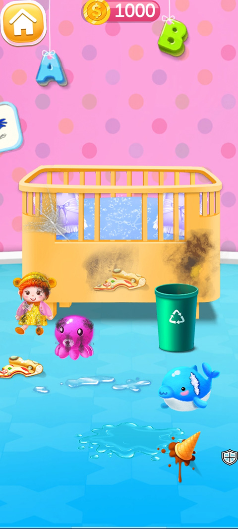 2、布置嬰兒床前需先完成清潔工作:將地上的垃圾丟進(jìn)垃圾桶,清洗散落的玩具,再擦拭嬰兒床并拖干地面水漬,還原整潔環(huán)境。