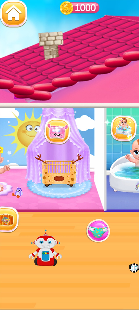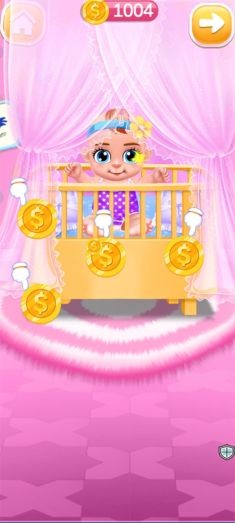 4、布置完畢后,即可將可愛的寶寶輕輕放入嬰兒床中。別忘了點(diǎn)擊屏幕上隨機(jī)出現(xiàn)的金幣進(jìn)行收集,為寶寶積攢“奶粉錢”哦!