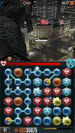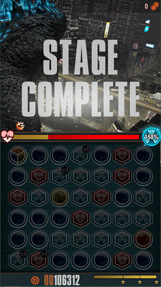 4、通過消除方塊為哥斯拉注入破壞能量,形成“消除—強化—毀滅”的正向循環。
