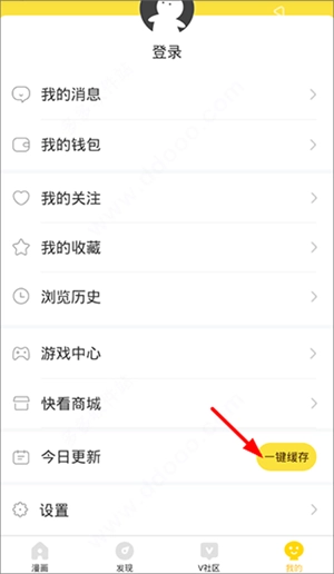 4、在個人主頁中找到“今日更新”欄目,點擊“一鍵緩存”即可開始保存漫畫。