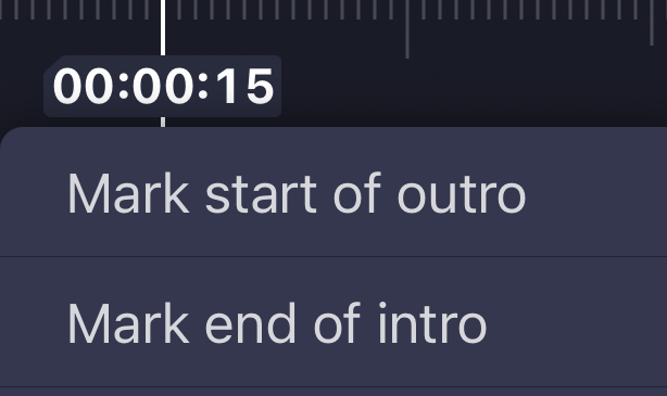要設(shè)置指示這些部分的重新計(jì)時(shí)標(biāo)記:將播放頭滾動(dòng)到所需時(shí)間>長按當(dāng)前時(shí)間>選擇所需動(dòng)作。