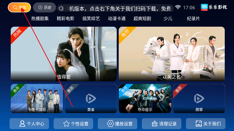 1、下載打開樂樂影視TV版;