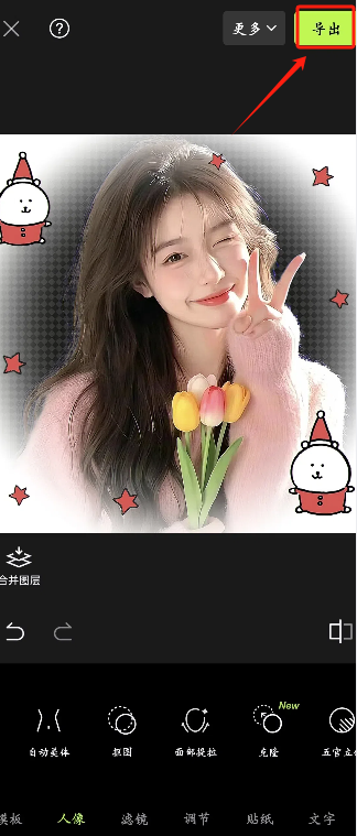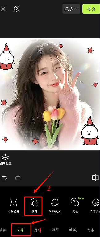 2、進(jìn)入編輯界面后,點(diǎn)擊底部菜單中的【人像】選項(xiàng),隨后選擇【摳圖】功能