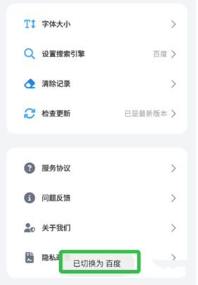 選擇后若未彈出切換提示,可返回主頁進(jìn)行搜索測試,查看搜索結(jié)果的引擎標(biāo)識。