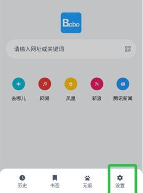 4、另外,您也可以通過以下步驟設(shè)置夜間模式:在啵啵瀏覽器APP的“我的”界面,點擊右上角的設(shè)置圖標(biāo)。