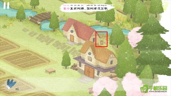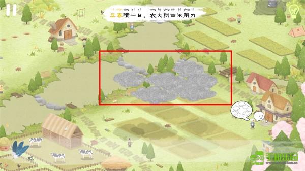 進(jìn)入立春場景后,發(fā)現(xiàn)左下方農(nóng)夫愁眉不展——田地上空烏云密布。連續(xù)點(diǎn)擊烏云,直至其完全消散,恢復(fù)晴朗天空。