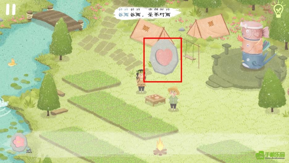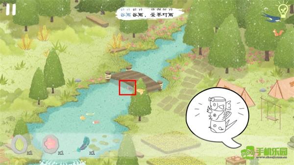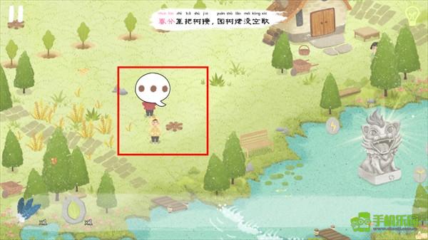 返回河邊,一座石獅現(xiàn)身。點(diǎn)擊后可將已收集的3塊石板(燕子羽毛、水滴、嫩芽)放入其中,但尚缺3塊,需繼續(xù)推進(jìn)后續(xù)節(jié)氣。