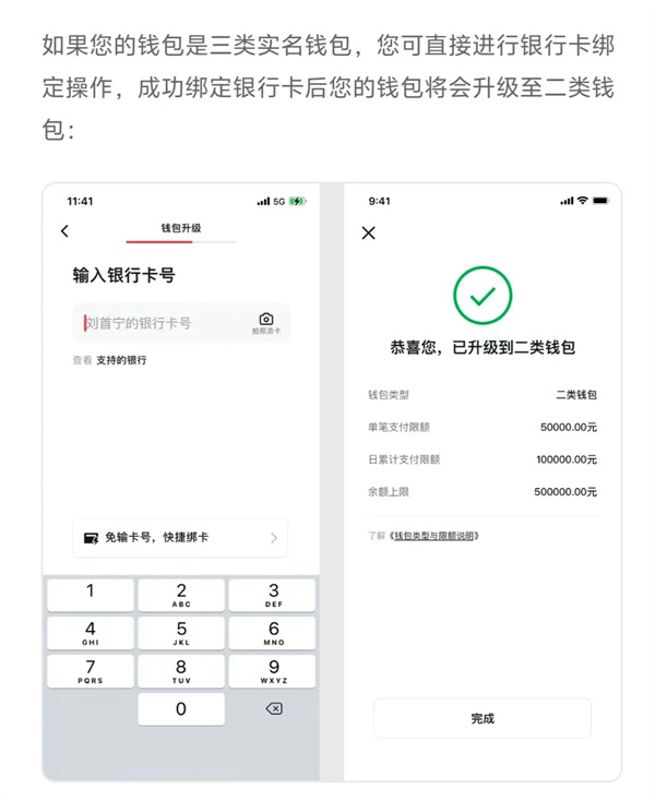 開通三類或四類錢包無需銀行卡;若需開通或升級為一類、二類錢包,則必須綁定本人境內(nèi)銀行賬戶。
