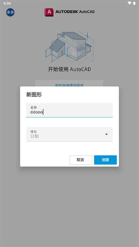 4. 輸入圖紙名稱,選擇合適模板,點擊“創(chuàng)建”即可生成新項目。